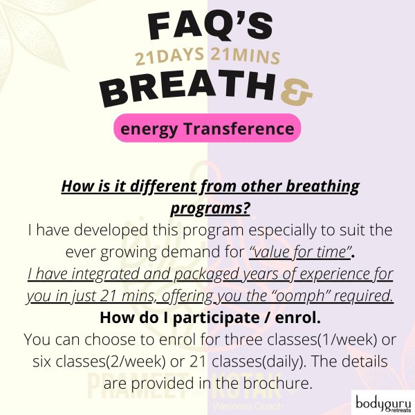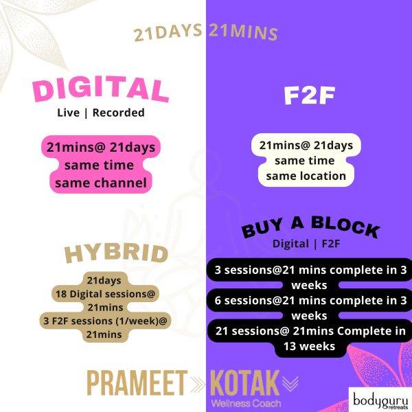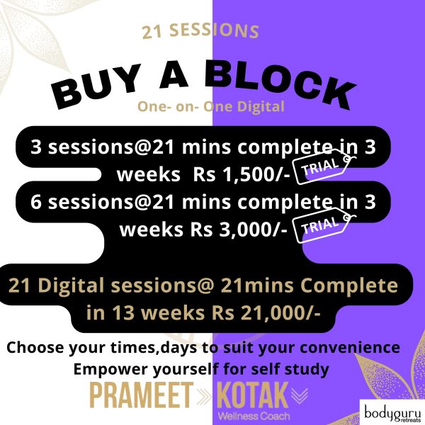 | Options | 6 Sessions (21 mins each), Additional Session |