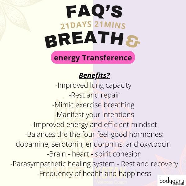 Breath &energy transference – We practice breathing patterns, mobilise energy from the cosmos and practice how to harness the energy by transferring it from the universe, through our body and back to the universe. Remembering that we are energetic beings and by transferring energy we are simply cleaning up the stale energy that sits in our physical, mental, emotional and spiritual bodies.